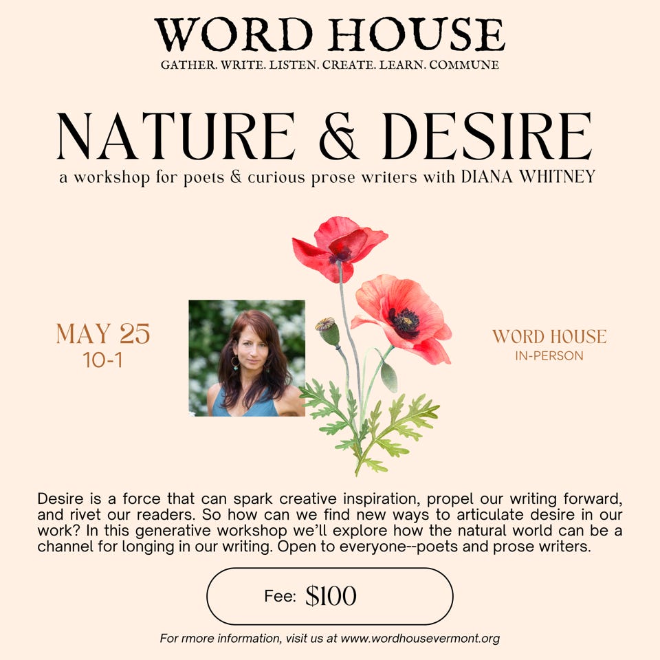 I’m excited to teach a generative workshop in May at Robin MacArthur’s magical Word House. Open to writers of all genres and all levels of experience! Find out more HERE.